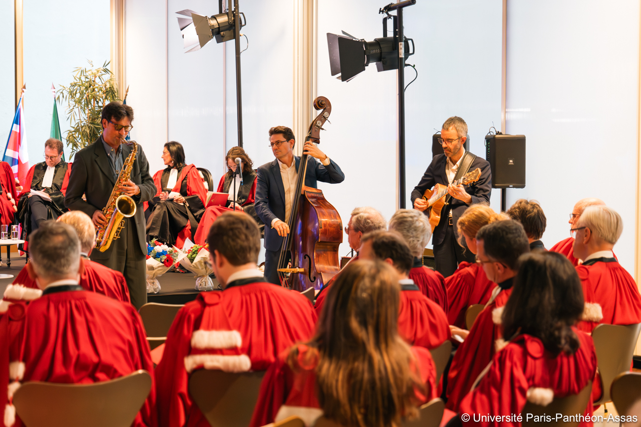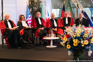 La cérémonie s'est déroulée dans le patio du centre Assas en présence des vice-présidents, du corps professoral et professeurs émérites et honoraires de l'université.