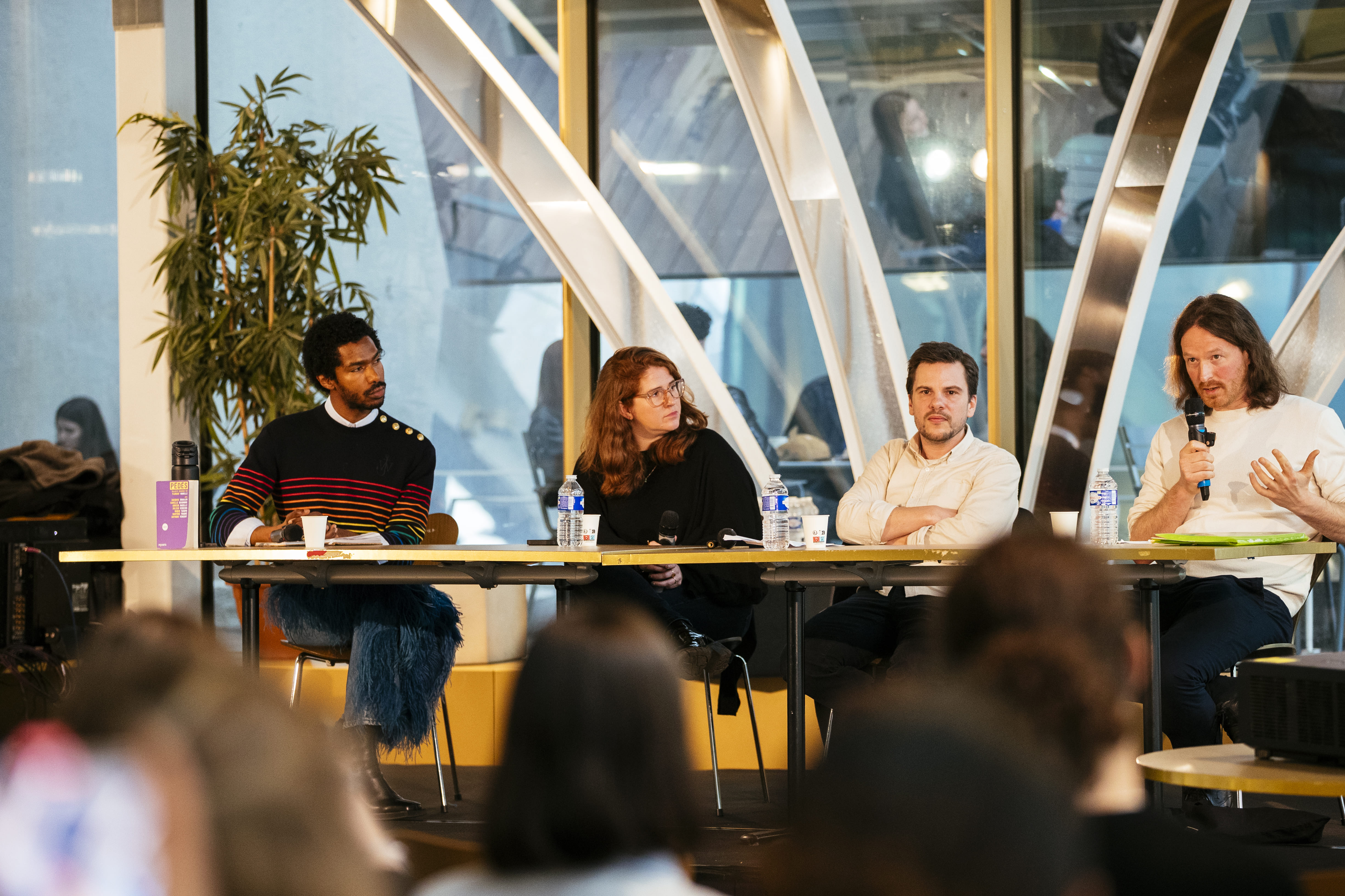 Les interventions suivantes, sous forme de tables rondes, ont permis de discuter avec des professionnels des applications de rencontre intime avec Anthony VINCENT, journaliste et co-fondateur du podcast Extimité, Claire RENIER, PR Manager chez Happn et le chercheur Adrien PÉQUIGNOT de l’Université Paris 8 (Cemti) mais également de la gamification de la société avec Pascaline ANDREY, fondatrice de Monumentales, et Douglas ALVES, Video Game Teacher et journaliste. Pour ces interventions, Romain BADOUARD maître de conférences à l’IFP et Romain GOULOUMES, journaliste chez 20 minutes étaient respectivement modérateurs.